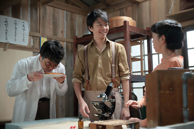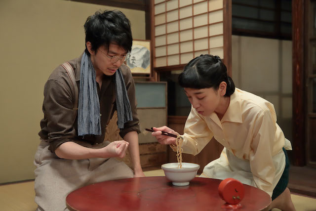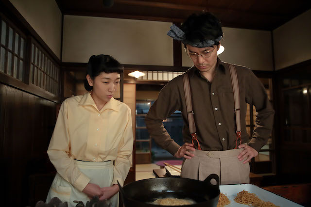 萬平が高野豆腐に注目し、麺を冷凍することを思いついた第109話。第110話では、福子(安藤サクラ)が天ぷらを作る様子を見て、萬平がひらめく。早速、蒸した麺にスープをかけ、油で揚げると、水分が蒸発したカリカリ麺が完成。それにお湯をかけたところ、麺が柔らかく戻り、食べたら味も美味しい。これなら常温保存もできそうと、福子と子供たちは大興奮。しかし喜ぶ福子らを尻目に、萬平は冷静を保つ。なぜかダネイホン作りでお世話になった近江谷先生に連絡し……。