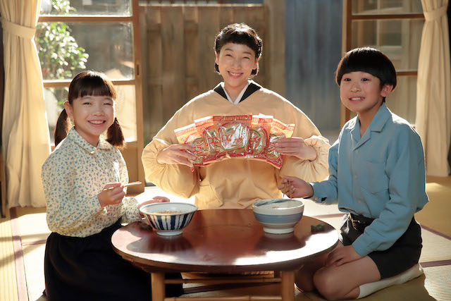 そこで、さらなる売り上げ向上を目的に考えられたのがCM製作である。石鹸のCMを観ていた福子が突如閃いた。「ダネイホン」のときは萬平が看板のモデルになったものの、「まんぷくラーメン」の宣伝に担ぎ出されたのは福子本人。「ダネイホン」の宣伝用テープの録音には携わった福子であるが、今回のようにテレビに映るとなるとさすがの福子も緊張している様子だった。初めての撮影の際にはガクガク手元を震わせてしまい、世良(桐谷健太)から「あかんやろ、あんなもん!」「見ている人が不安になるわ」とツッコミが入る。それでもどうにか少しずつ撮影に慣れていき、源(二宮輝生)と幸(三宅希空)と一緒のシーンではいかにもCMらしく仕上がっていた。