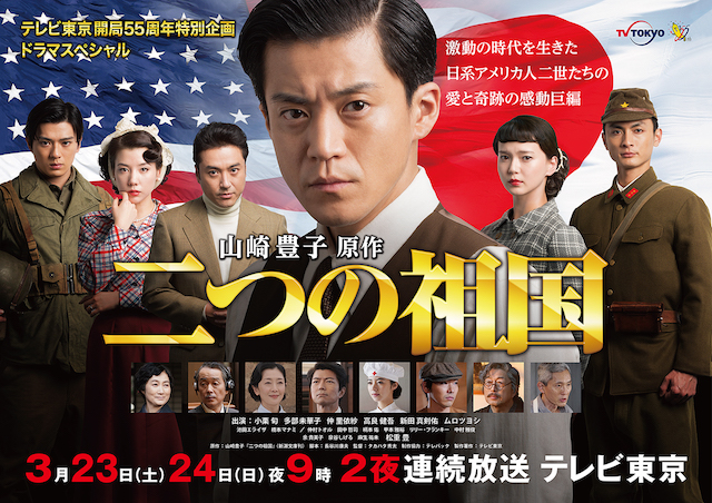 3月23日と24日に放送される本作は、発行発行部数250万部突破のベストセラーである山崎豊子の同名小説を、民放で初めて映像化するもの。1900年代、第二次世界大戦前・中・後のアメリカと日本を舞台に、歴史に翻弄されながらも激動の時代を生き抜いた日系アメリカ人二世たちの、愛と奇跡の青春群像劇を壮大なスケールで描く。
