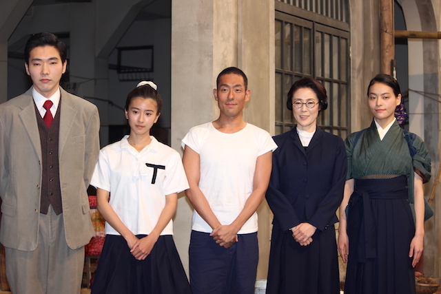 今回会見に登壇したのは、四三を演じる中村勘九郎と、第2章より登場する新キャスト、寺島しのぶ、黒島結菜、菅原小春、柄本佑の5名。さらにイッセー尾形、夏帆、板尾創路の出演も明かされた。