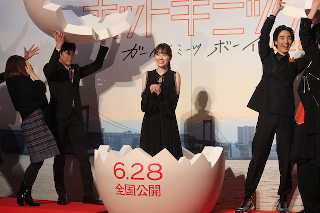 映画『ホットギミック ガールミーツボーイ』の完成披露イベント(第1部)、完成披露舞台挨拶(第2部)が、本日6月12日に新宿バルト9で開かれた。映画初出演、初主演を飾る乃木坂46の堀未央奈を始め、清水尋也、板垣瑞生、間宮祥太朗、山戸結希監督、第2部からは桜田ひより、上村海成、吉岡里帆が登壇した。
