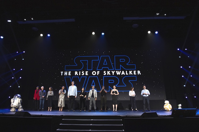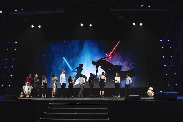 カリフォルニア州のアナハイム・コンベンションセンターで現地時間8月23日から25日の3日間に渡り行われたディズニーファンイベント「D23 Expo 2019」にて、『スター・ウォーズ/スカイ ウォーカーの夜明け』のプレゼンテーションが実施され、監督・脚本を務めた J・J・エイブラムスや製作のキャスリーン・ケネディ、主人公レイを演じたデイジー・リドリー、レイを支えるフィン役のジョン・ボイエガ、ポー・ダメロン役のオスカー・アイザック、脇を固めるチューバッカを演じるヨーナス・スアタモ、ローズ役のケリー・マリー・トラン、そして全エピソードに唯一出演してる生きるレジェンド、C-3POを演じたアンソニー・ダニエルズも登壇した。さらに、ナオミ・アッキーやケリー・ラッセルなど新キャストたちBB-8とR2-D2、本作から新たに登場するD-Oら人気ドロイドも登壇。ランド・カルリジアンとして再びスクリーンに帰ってくるビリー・ディー・ウィリアムズが最後に登場し、42年の歴史を締めくくる“完結編”に向けて、ファン約7,000人で埋め尽くされた会場は大きな熱気と興奮に包まれた。