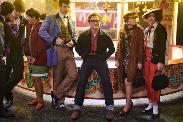まず圧倒されるのは、タロン・エジャトンの歌唱力とパフォーマンスである。『ボヘミアン・ラプソディ』とは異なり、ヒットナンバーを人生のところどころにあてはめたミュージカル作品として作られている本作で、エジャトンが躍動し、自身の声で名曲群を見事に歌いあげている。彼がここまで多才な俳優だったという事実に、観客の多くは驚いたのではないだろうか。そして、『キングスマン』シリーズで演じてきた、イギリス労働者階級出身の若者というキャラクターが、エルトンの出自と重なっている部分も奏攻しているといえよう。