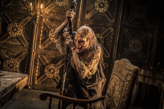 今回公開された場面写真では、ヘルボーイが戦うバラエティに富んだ魑魅魍魎たちの姿が切り取られており、ブラッドクイーンに仕える猪の姿の妖精グルアガッハ、そしてヘルボーイと過去に確執のある魔女・バーバヤーガらの姿も確認できる。本編ではこの他にも人喰い巨人をはじめ、ブラッドクイーンが集めたおびただしい数のモンスターたちが登場する。