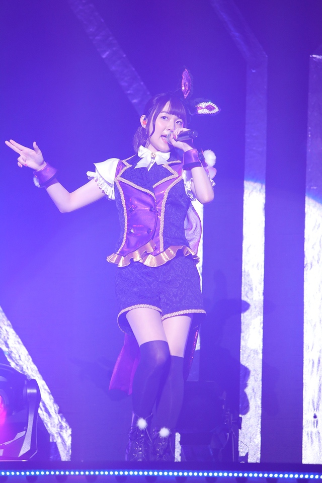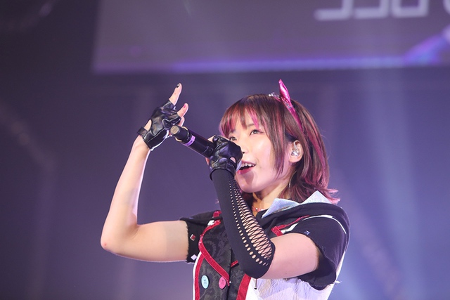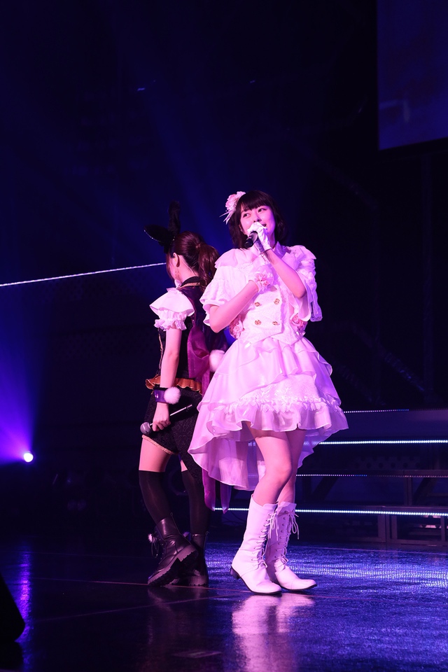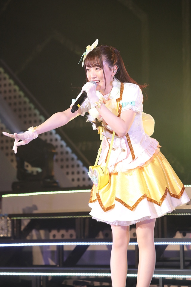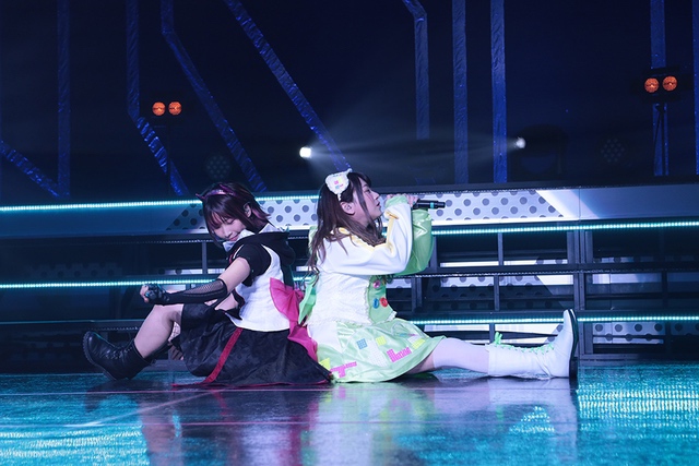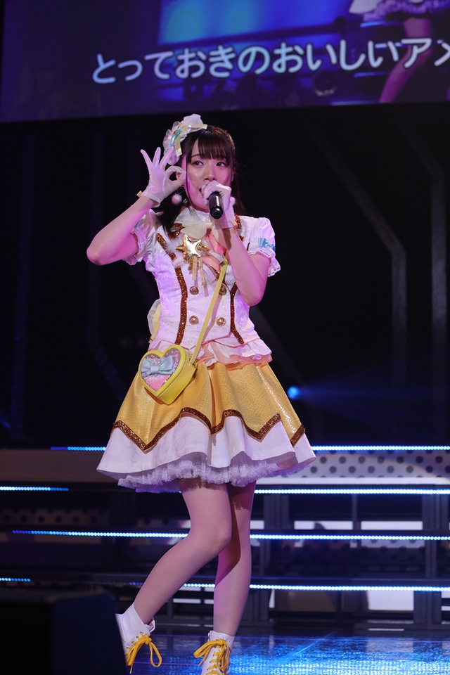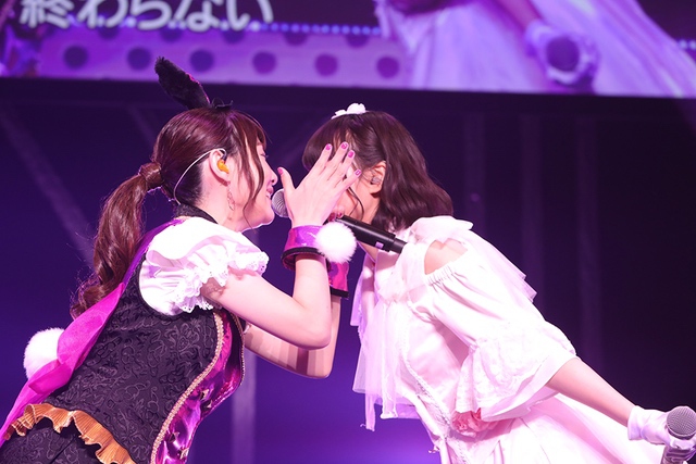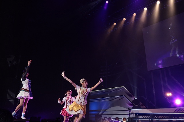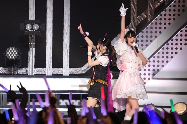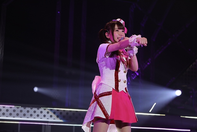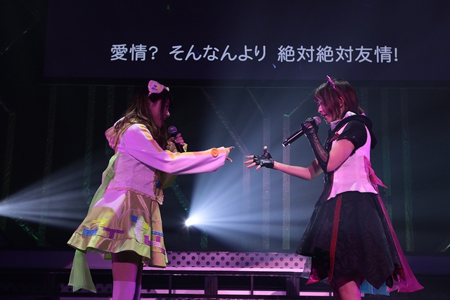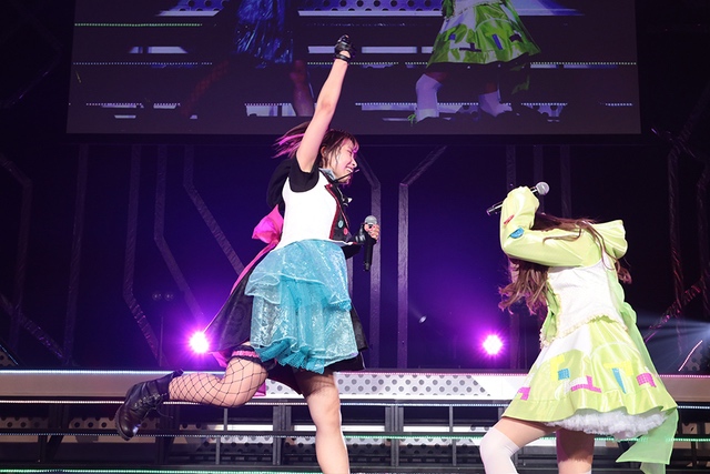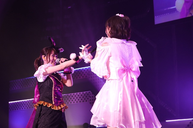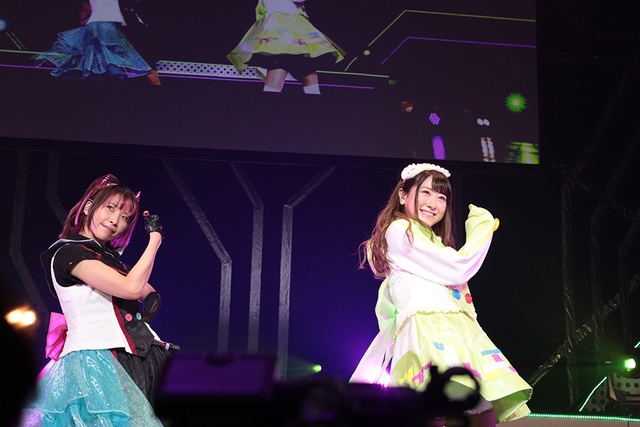 その後は近藤玲奈(桜井春菜役)と中島 唯(早乙女彩華役)によるbitter flavorのパートへ。キュートなペアダンスに大きな歓声が上がったユニット曲「Kiss Me Kiss」から、近藤がキュートだけどベースの効いた春菜のソロ曲「SWEET SHAKE!!」を歌い上げる。その後は中島が登場し、彩華のソロ曲である「What color...」をパラパラ付きで熱唱した。