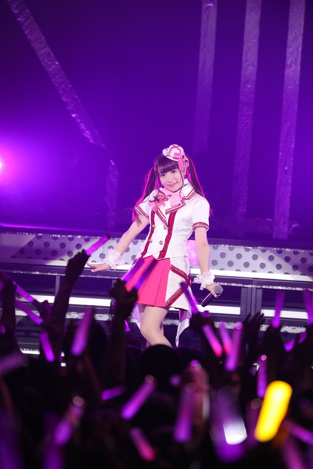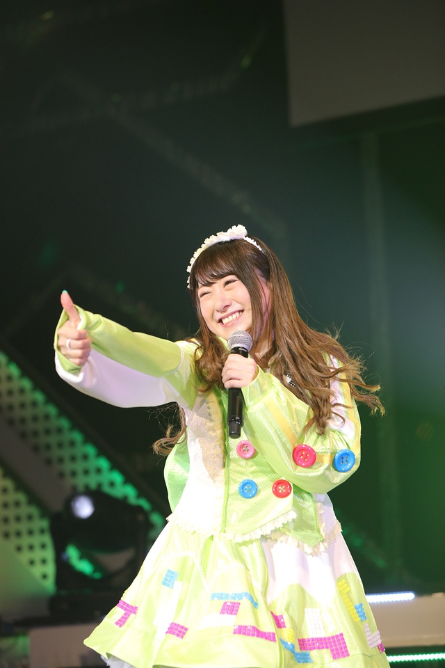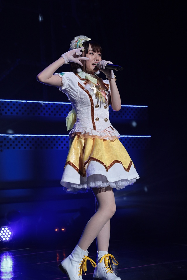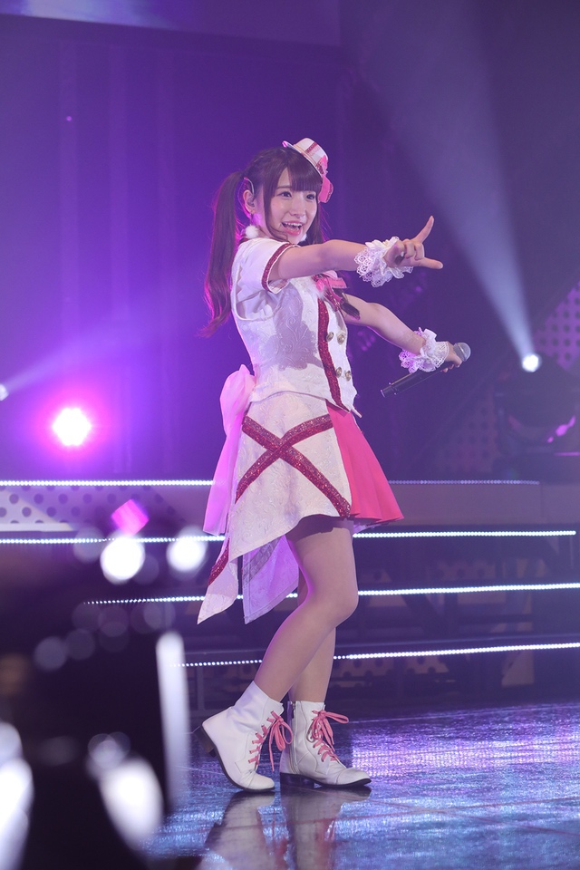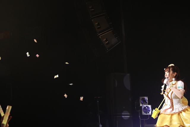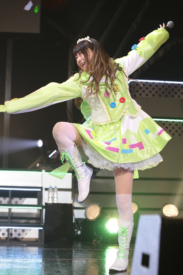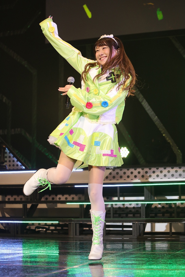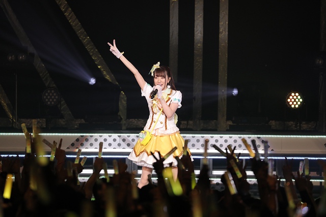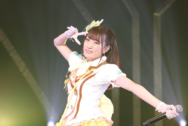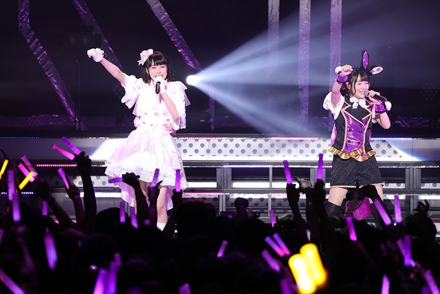 その後は近藤玲奈(桜井春菜役)と中島 唯(早乙女彩華役)によるbitter flavorのパートへ。キュートなペアダンスに大きな歓声が上がったユニット曲「Kiss Me Kiss」から、近藤がキュートだけどベースの効いた春菜のソロ曲「SWEET SHAKE!!」を歌い上げる。その後は中島が登場し、彩華のソロ曲である「What color...」をパラパラ付きで熱唱した。