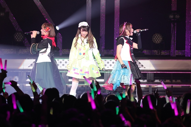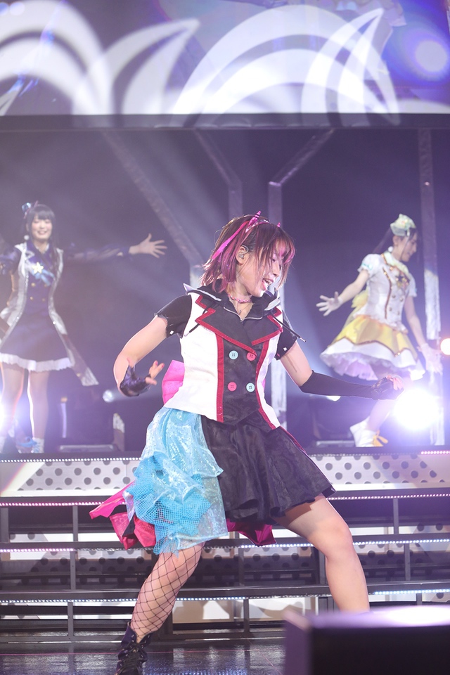 ASTERISMパートでは、春野による葵のソロ曲「Zest of Blue」、久保田による柚子のソロ曲「みんな Happy!!」、赤尾によるあかりのソロ曲「Perfect Shining!!」と、ソロ曲を3連発で叩き込む。それぞれのパフォーマンスは、歌唱力、ステージング(久保田のアメ投げも含め)のいずれにおいても、『「オンゲキ」LIVE vol.0』、『JAEPO』を経て、明らかな成長を感じられるものだった。